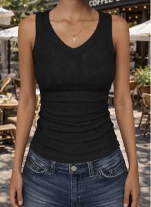 This piece from Anrabess needs a place in all of our closets! V-neck and the perfect flattering rib knit. Enjoy it with skirts, jeans, linen pants, shorts and under your favorite blazer or cardigan. It’s a capsule piece that’s classic. XO, Donna