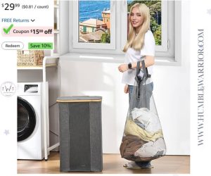 Tired of cluttered corners and overflowing hampers? The ELONG HOME Laundry Basket keeps things neat, stylish, and organized! Also includes a removable liner for easy carry to the washer.