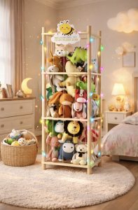 The stuffed animal, pillow and blanket towers are the best thing since sliced bread. Corral them all in one place in this sturdy wooden tower. XO, Donna