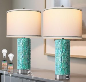 This Set of 2 Rotary Coastal Ceramic Table Lamps is beautiful! These lamps come with 2 USB charging ports. Very pretty and so convenient! XO, Alla