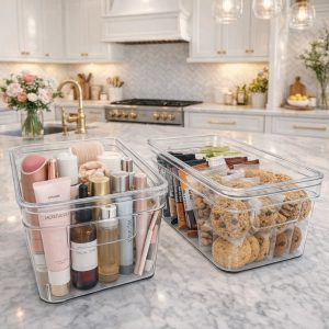 If you love organization, you’re my kind of people! The clear stackable bins with lids and handles have returned. Head to the last step for them to drop to 50%. XO, Donna