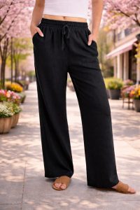The Anrabess wide leg palazzo pants are perfect for work and travel. Pull them on and go. Your day is busy enough without thinking about your pants.
