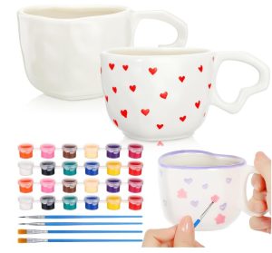 Set of 2 Valentine’s Day Heart Shaped Painted Mug Kit!