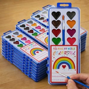 The cutest Valentine’s Day paint set is back in stock! You get 24 of them. As is, no extra steps needed. A wonderful alternative to sweet treats. XO, Donna