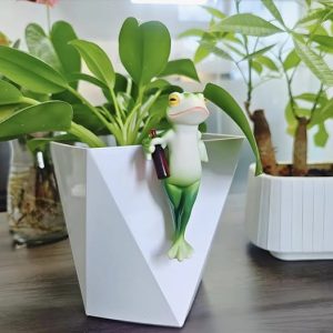 He’s just hanging on for dear life, judging your life choices, and living his best tipsy little pond fantasy. Perfect for plants that need emotional support and people who believe yard decor should have a sense of humor. Every pot deserves a slightly unhinged frog friend like this. Jeff