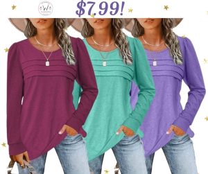 This Pleated Long Puff Sleeve Top is super cute! So many great color choices. The 20% automatically applies at checkout and not the cart. XO, Alla