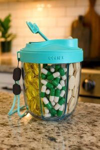 Stay organized at home or on the go. This large pill and supplement dispenser keeps your vitamins neatly separated for each day of the week with an anti-mixing design, travel strap, and 20 handy labels to customize your routine your way. XO, Donna
