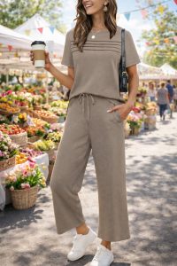 These two piece sets are just a dream! And, they go pretty quickly. Love this one from Wiholl! Love the pleated top — that elevates this beauty and the pockets too. Easy and chic.