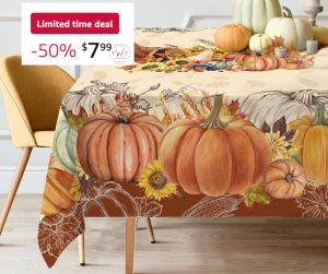 ๐๐ The perfect touch for your fall table! This pumpkin and cornucopia tablecloth brings a warm, festive feel to any Thanksgiving or autumn gathering. ๐๐ xo, MaryJo