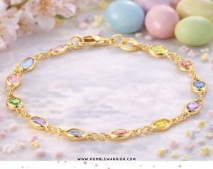 This gold tone bracelet is the cutest! Perfect for anyone that loves pastels and the color of birthstones. Pop this right in an Easter egg for your favorite bunny. The price is quite excellent too. XO, Donna