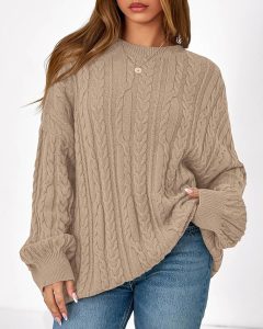 The definition of cozy. This oversized cable knit sweater brings that effortless winter vibe — soft, relaxed, and easy to pair with jeans or leggings for a laid-back, polished look.