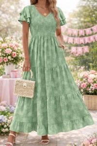 This gorgeous dress is just perfection for Easter, Mom’s Day brunch and graduations too. Flutter sleeve, v-neck, smocked bodice and pockets too. XO, Donna
