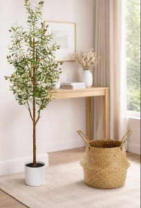Timeless greenery—no maintenance required. The LuceAlberi 6FT Artificial Olive Tree with Planter Basket brings a warm, Mediterranean touch to any room. With realistic leaves, natural-looking olives, and a stylish woven basket, it adds height and elegance without watering or upkeep.   Jeff