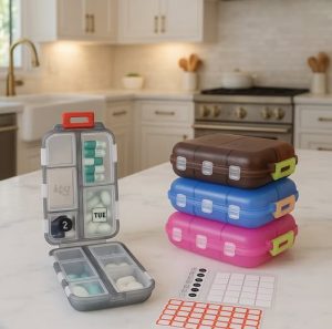 Compact, organized, and travel-ready. This folding pill case has 10 compartments and tons of label options to keep everything tidy on the go — perfect for daily vitamins or travel meds. XO, Donna
