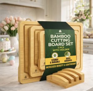 Bamboo Cutting Board Set of 3 with Holder
