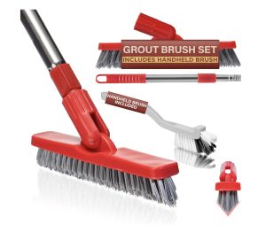 ULTIMATE GROUT CLEANING SET – Easily clean grout lines and grime buildup on tile floors, walls, and baseboards using the telescopic grout cleaner brush. Use the handheld deep cleaning brush to get rid of pesky dirt buildup. Jeff