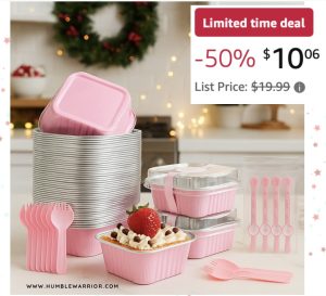 Pink perfection for party treats! These mini cake pans come ready for anything — weddings, birthdays, or a cozy dessert night in. Each set includes 50 aluminum cups with lids and spoons, perfect for cupcakes, puddings, or bite-sized bakes. Cute, convenient, and clean-up’s a breeze. XO, Donna