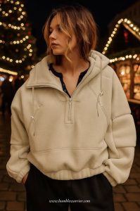 Cozy, oversized, and perfect for layering — this half-zip fleece hoodie has that soft, relaxed feel everyone loves. The V-neck design, roomy pockets, and plush fabric make it an easy favorite for chilly days, errands, or lounging at home. XO, Donna