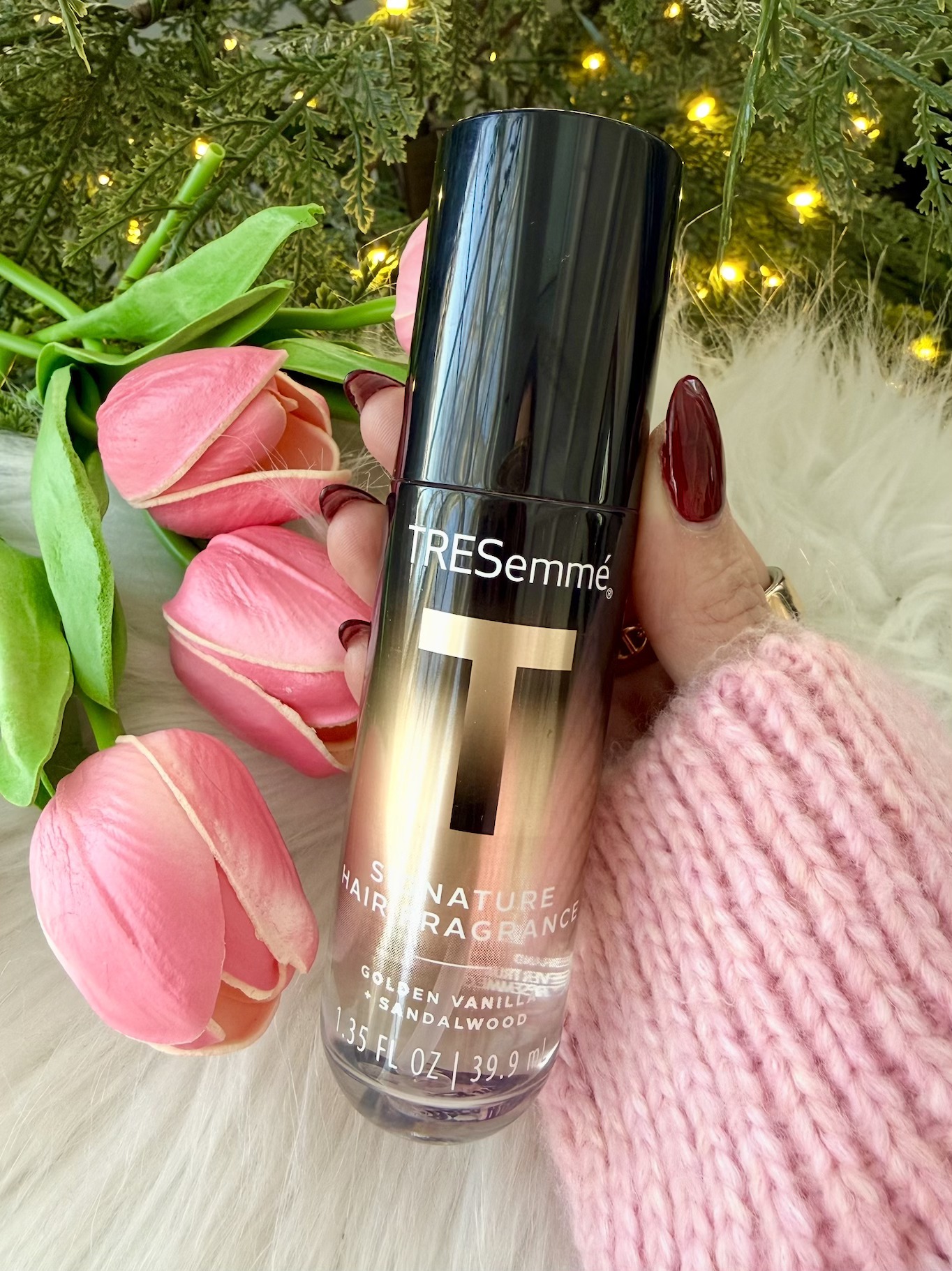 The NEW TRESemmé A-List Collection Signature Hair Fragrance in Golden Vanilla + Sandalwood smells like soft vanilla wrapped in warm sandalwood — not heavy, not fake, just perfectly comforting and luxe. It’s the kind of scent that lingers in a “what are you wearing?” way. 🩷